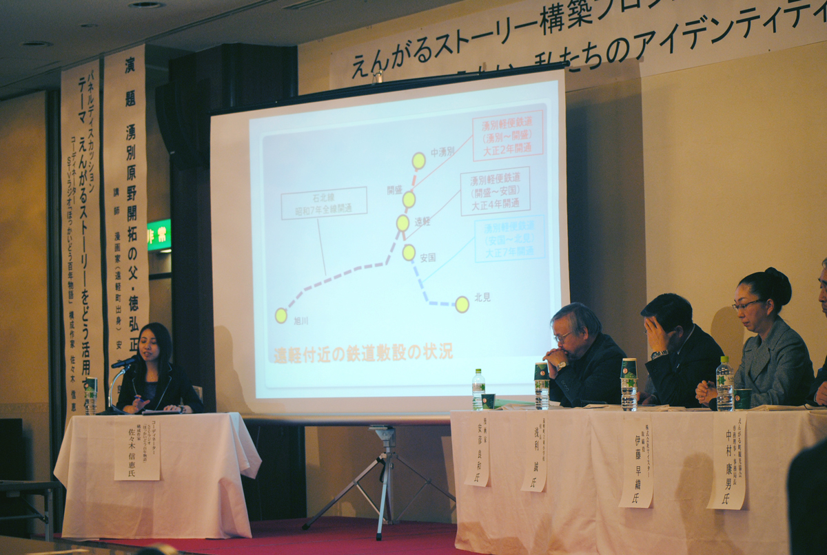 また、安彦先生が王道の狗を出されてすぐ、上湧別出身の画家で亀岡トモコさんという方からぜひこれ読んでくださいと言われ、読んだ時に徳弘さん、武田さんのお名前が出てていました。そして昨日、遠軽教会でクリスマスコンサートをさせていただいたんです。ここの100年史が、2年程前出てるんですが、その中に出てた事が今日のお話の中にも出ていて、まず理想郷を作ろう、キリスト教の理想郷を作ろう。そしてもう1つは、大学を作ろうと。牧師様がおっしゃってましたが「その2つの夢は消えたけれども、今もこうやってこの遠軽の教会は残ってるんです」。