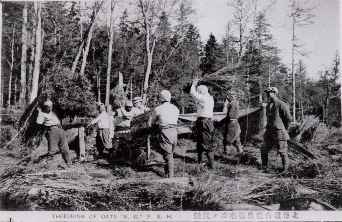 北海道白滝農場燕麦の脱穀